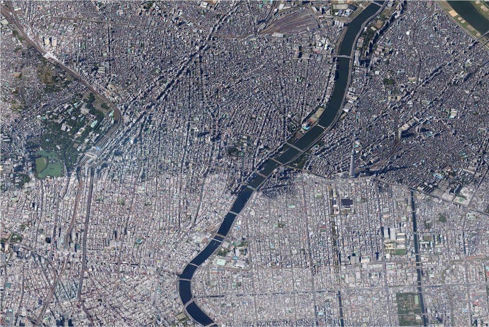 The first image below (100x67cm) features some of my favorite areas in Tokyo. I could share numerous stories about my walks through these streets, detailing which streets I wandered and what I encountered along the way. These stories would include encounters with homeless people in Minami-Senju (south of the major freight terminal visible in the northern part of the image), amusing anecdotes from Asakusa, and endless tales about Ueno.