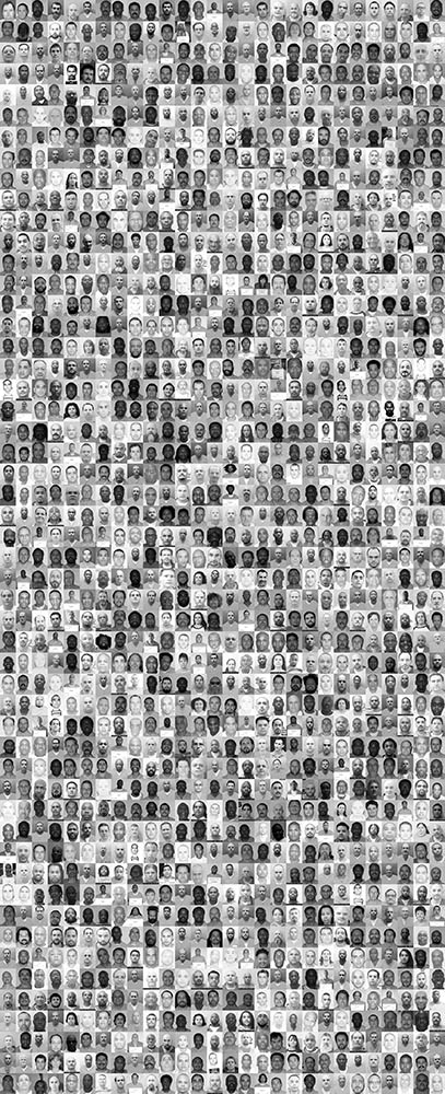 I initiated the project in February 2008 as a collage of photos of all individuals on Death Row under the Florida Department of Corrections. The original images are sourced from various Departments of Corrections and are publicly accessible on the internet. The first image, measuring 195x100cm, was originally intended for an exhibition with an 'interpassive' character (note that 'interpassive' here is distinct from Robert Pfaller’s concept of interpassivity).