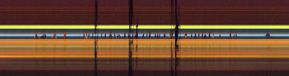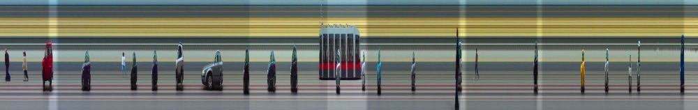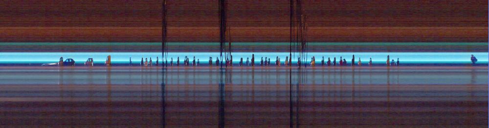 ... is a collaborative project with Stefan Resh from the Vienna University of Technology. Together, we developed a technology where a spatial dimension is, at least partially, replaced by time. In this system, the X-axis represents a continuum of aggregated time frames, while the velocity of moving objects and subjects is depicted through their dilation.